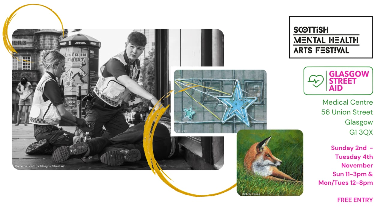 His black and white series is set in the Medical & Welfare Centre of Glasgow Street Aid, capturing the efforts of volunteer medical crews working on foot, at night, on the frontlines of Glasgow city centre. The exhibition also features work from other Scottish artists.