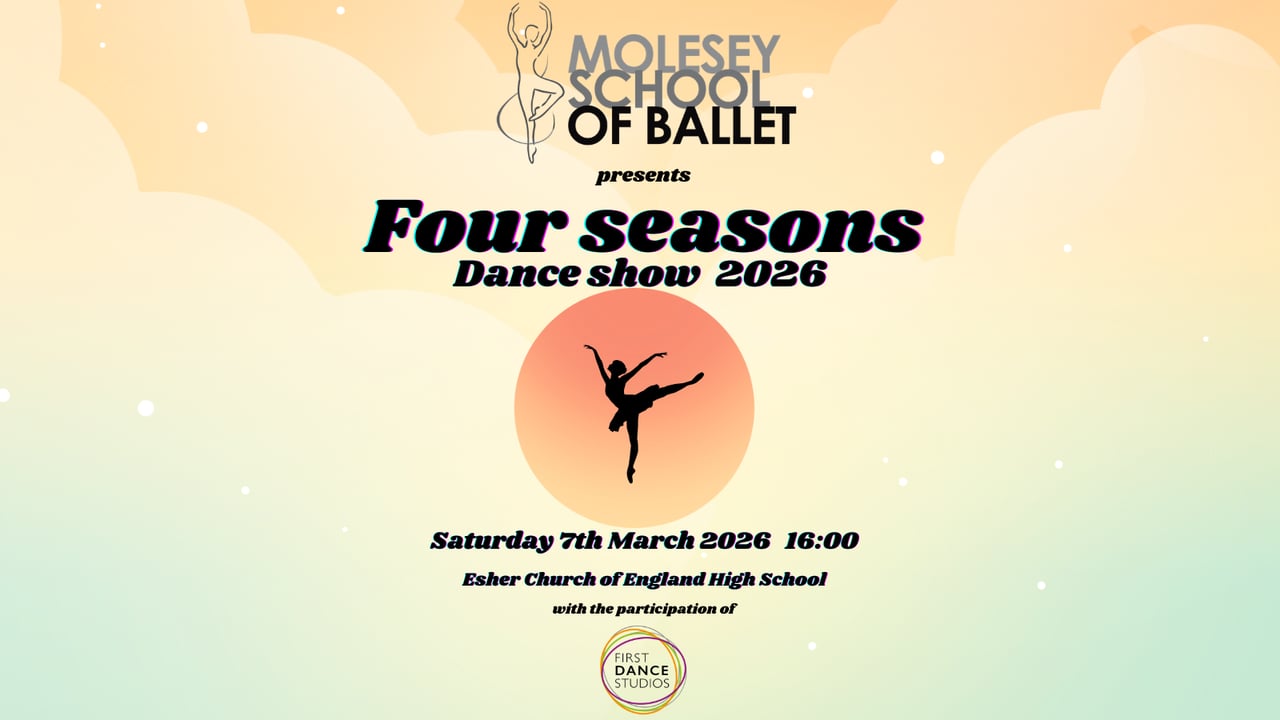 We look forward to welcoming you to Molesey School of Ballet annual dance show, with the participation of First Dance Studios. Our students, children and adults, have been working incredibly hard to prepare a fabulous show and will take you on a wonderful dancing journey through the seasons. So sit back, relax and enjoy the show!